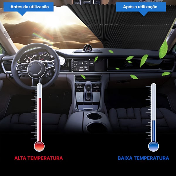 O nosso produto bloqueia efetivamente os raios UV prejudiciais, evitando o superaquecimento e a degradação do seu carro. Ajuda a manter o interior mais fresco e reduz significativamente os danos aos bancos e ao painel do seu carro.
