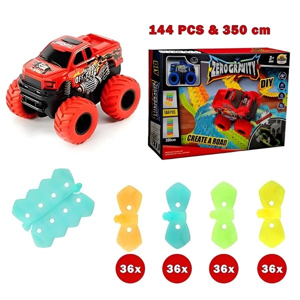 🚗 Está incluído- 1x Carro LUMITRACK + 144x Peças para fazer a Pista