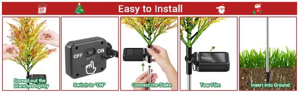 Novo design 2025 – Em resposta ao feedback dos nossos clientes, otimizámos e melhorámos muitas funções. A árvore luminosa solar é feita de material ABS de alta qualidade e a sua aparência lembra o pinheiro e o cipreste. Acende-se automaticamente e ilumina de duas formas diferentes, satisfazendo todas as suas necessidades.