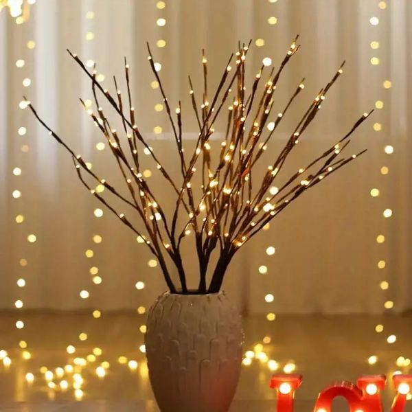 Um conjunto de luzes de ramos LED composto por três ramos, cada um com 20 LEDs, totalizando 60 pequenos suportes de lâmpadas, proporcionando iluminação suficiente para criar um ambiente acolhedor e convidativo.
