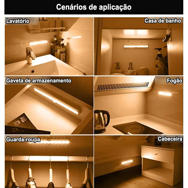 Nunca mais tropece no escuro! Instale esta luz perto do pé da sua cama, para que, quando acordar à noite, a luz se acender automaticamente, guiando-o em segurança para a casa de banho ou para a porta.