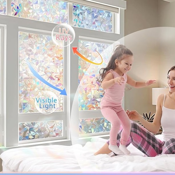 Quando a luz solar atinge a película, esta cria um incrível arco-íris de cores em toda a divisão, mas não bloqueia a luz natural. Esta película funciona bem em qualquer divisão – salas de estar, casas de banho, escritórios e até portas de vidro – tornando-se uma solução versátil para diferentes espaços.