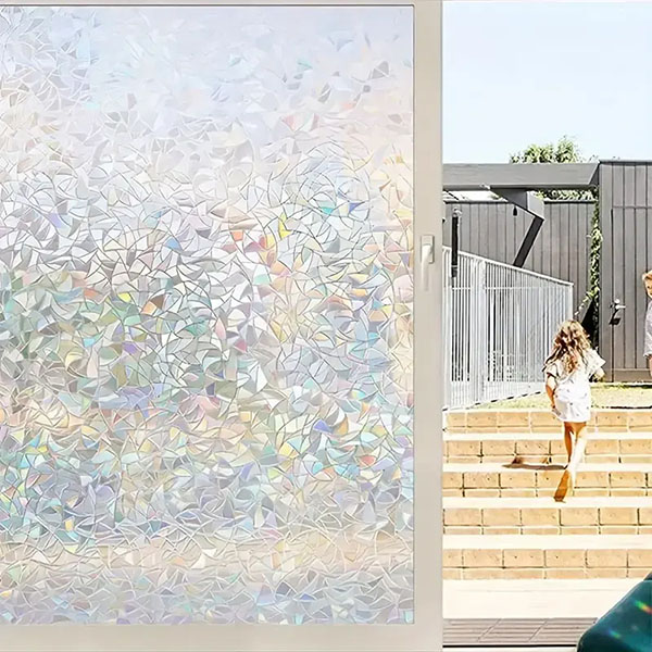 Para além do efeito arco-íris, a película acrescenta um aspeto de vidro fosco ou texturado, dando às suas janelas uma atualização moderna e elegante sem o custo de um vidro novo.