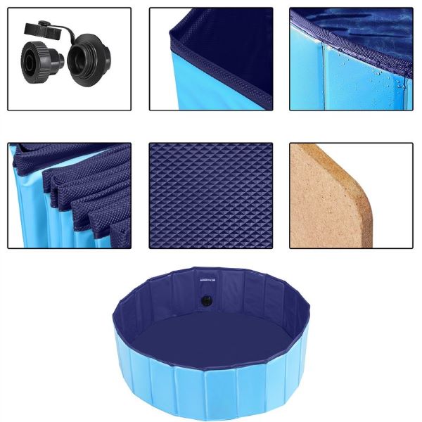 Esta piscina para cães é construída em PVC e inclui uma placa de plástico rígido PP de alta resistência com 0,6 mm de espessura, que é muito mais resistente do que a placa de fibra normal. Esta construção garante que a piscina mantém a sua forma mesmo quando está vazia. A placa de PP é resistente ao bolor e ao mofo, assegurando uma longa duração. O fundo espesso e antiderrapante proporciona uma excelente estabilidade, evitando que a piscina se desmorone e garante uma experiência segura e agradável para os seus animais de estimação.