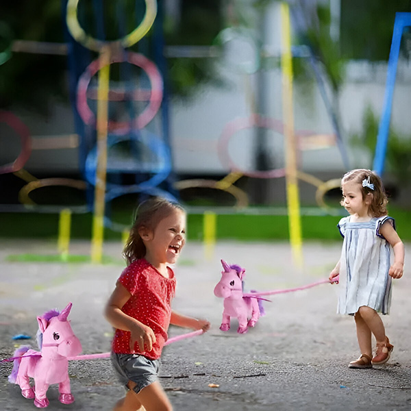 Ideal para crianças que estão a aprender a andar, a Roxy vem com uma trela macia. Basta premir o botão do coração e vai ver o seu filho seguir alegremente o pónei, melhorando as suas capacidades motoras e coordenação.