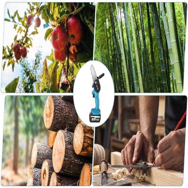 A mini serra sem fio é adequada para jardinagem e corte de madeira e ramos.