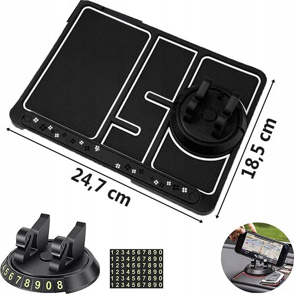 📏 Compatibilidade universal: Medindo 24,7 x 18,5 cm, este tapete encaixa-se perfeitamente em qualquer painel de carro, garantindo uma colocação firme e segura.